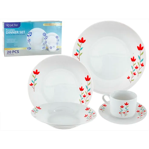 VAJILLA PORCE 20 PZAS BL/MOR/VD/ROS ROYAL LINE 705-2502